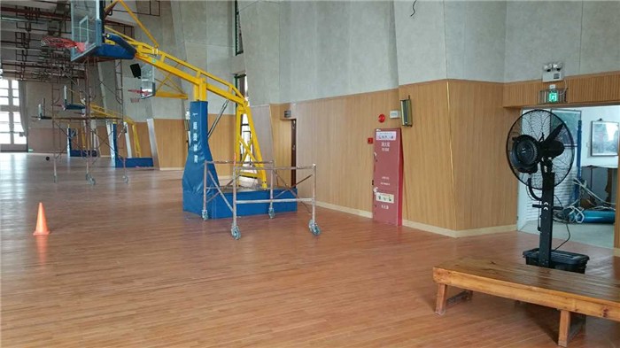 2、將籃球地板上麵的運動器械等使用推車移走。